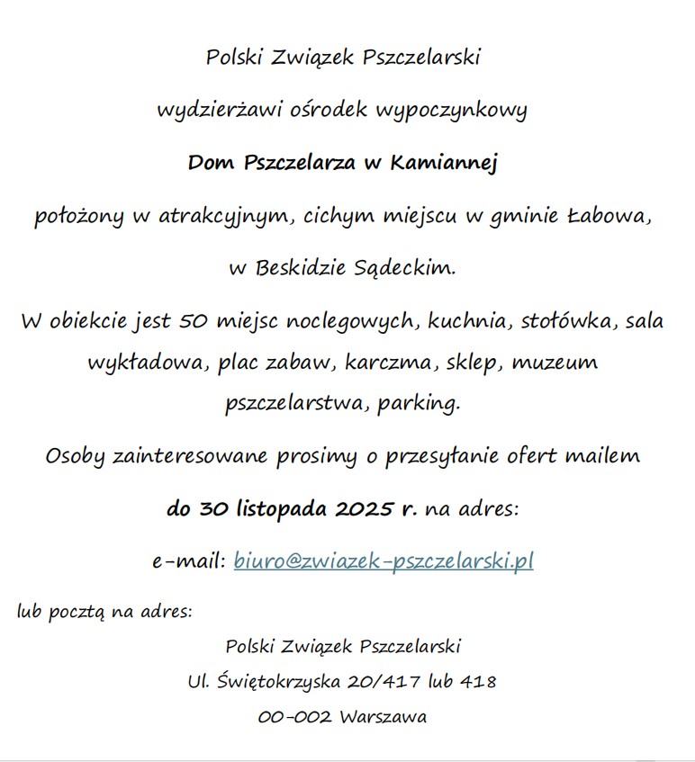 Zapraszamy do składania ofert na dzierżawę Domu Pszczelarza w Kamiannej